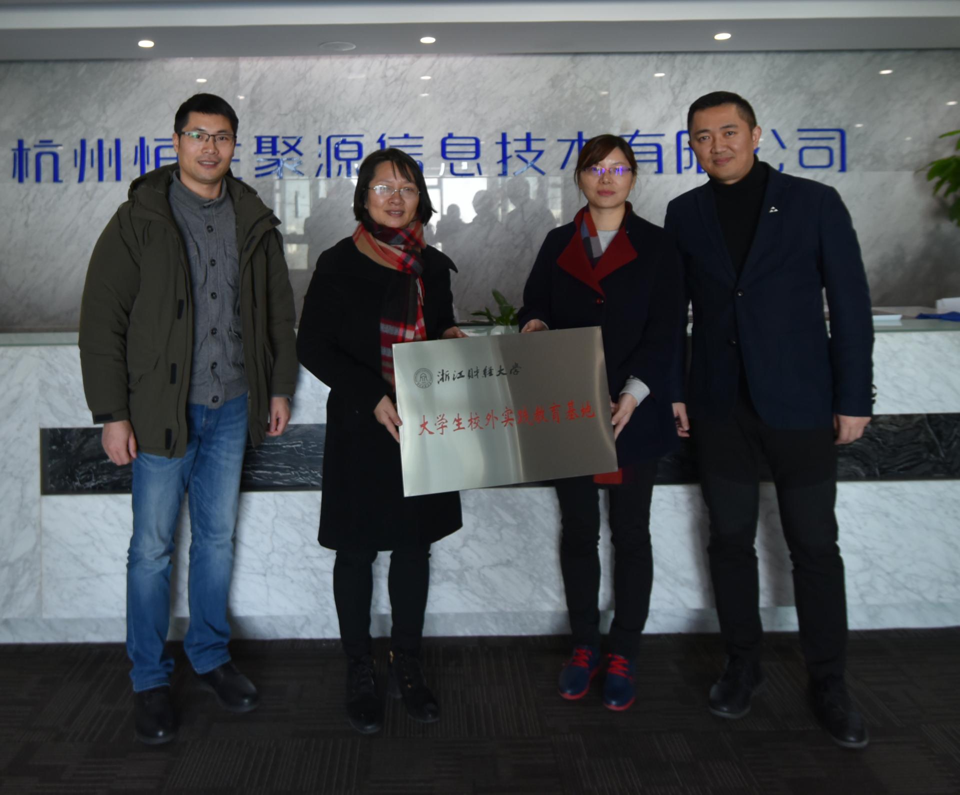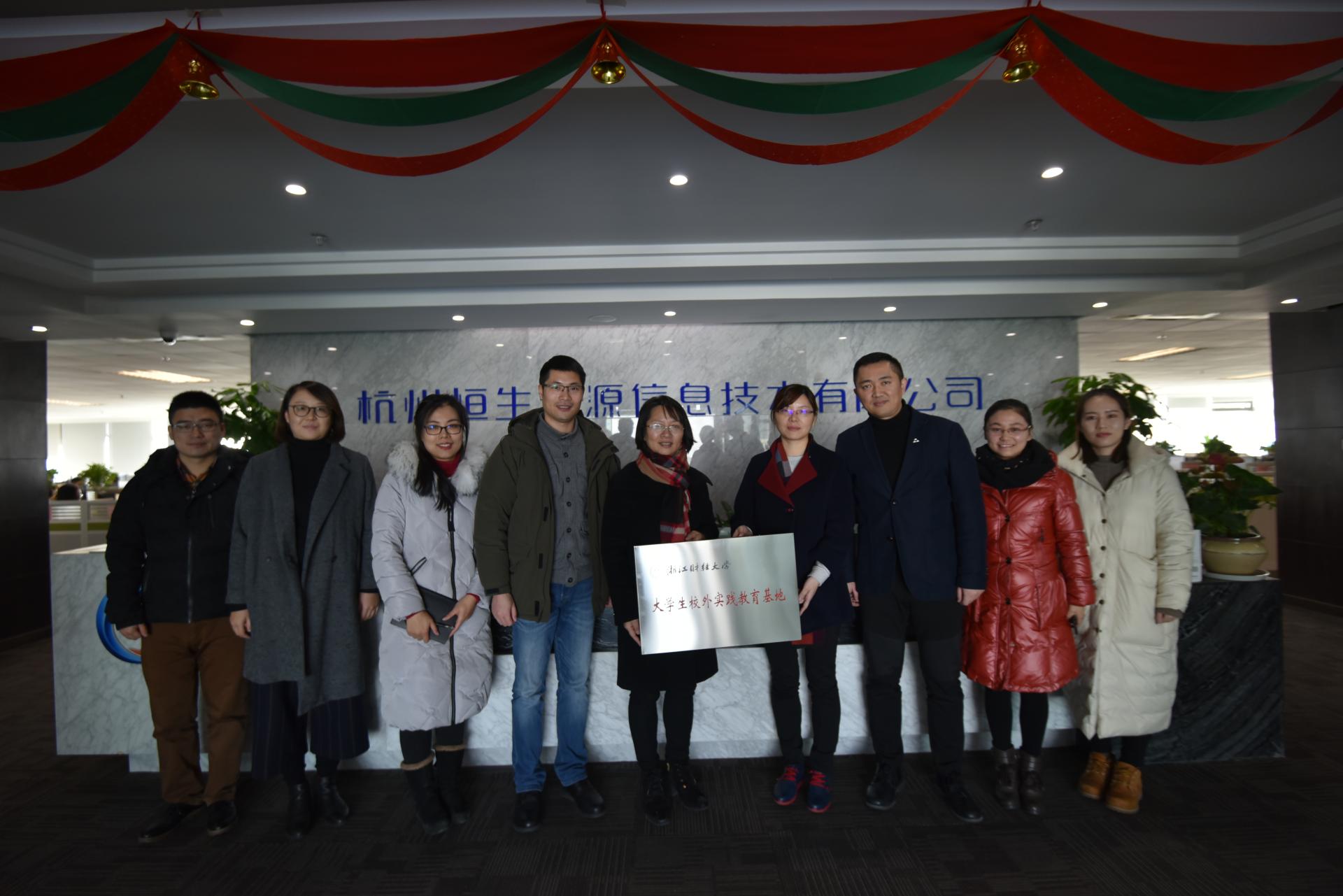 与杭州恒生聚源信息技术有限公司合作共建大学生校外实践教育基地的揭牌仪式在杭州恒生聚源信息技术有限公司举行。杭州恒生聚源信息技术有限公司总经理姚红琼、副经理蒋涛、恒生电子股份有限公司公共事务部副经理陈伟、高级公共事务专员林佳佳、成人网