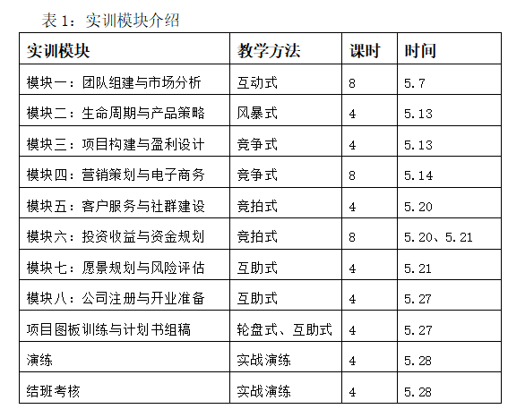 网站另行通知。课程实训模块介绍见表1。