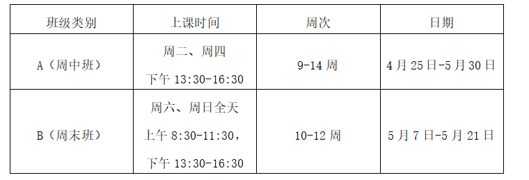 本期课程计划分两类时间段开班,具体安排如下,请根据时间安排选择合适的教学班。教室安排根据招生情况在成人网