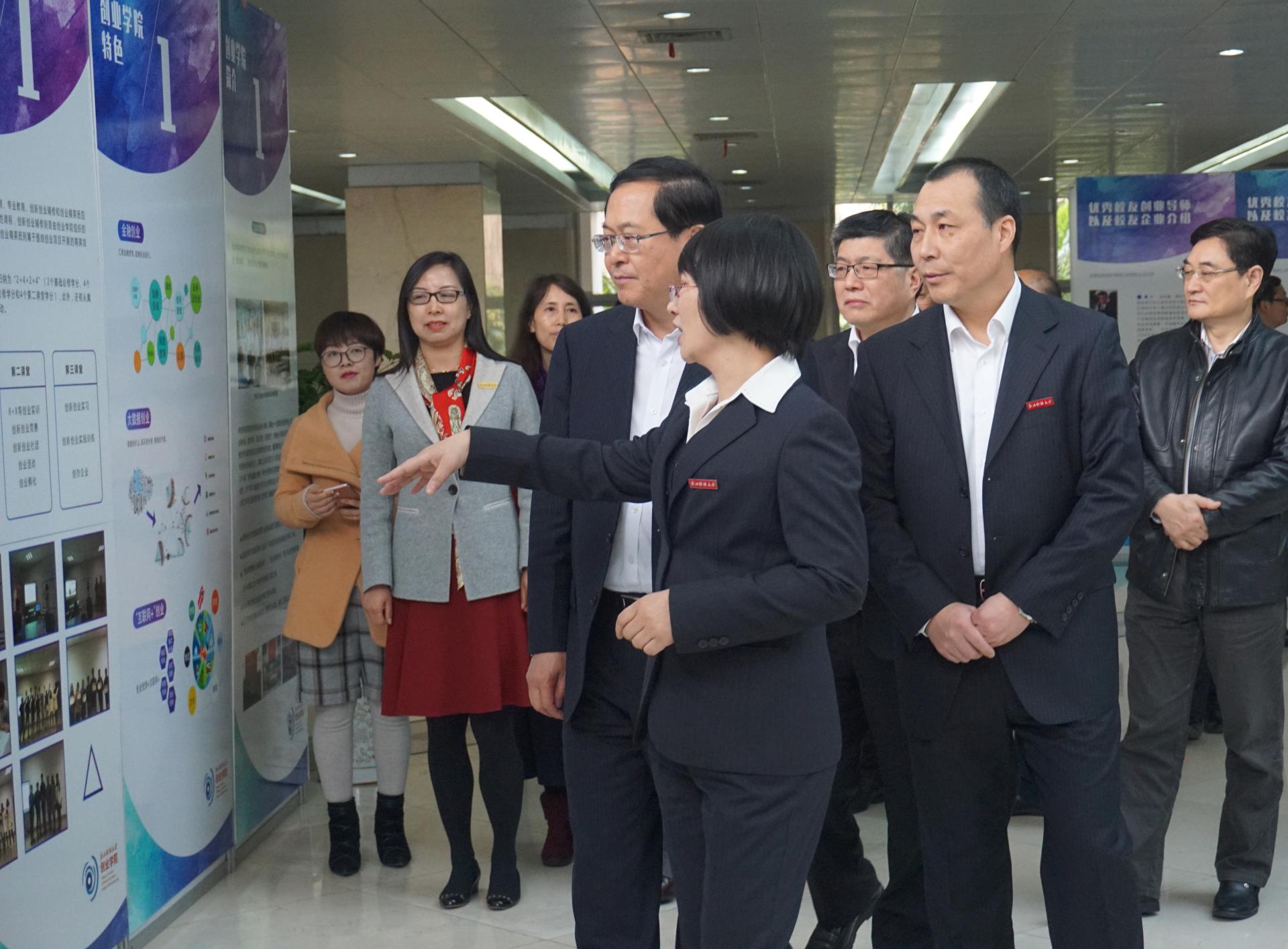 创新创业教育工作。副省长成岳冲,省政府秘书长李卫宁,省政府副秘书长李云林、沈建明、王纲,省委教育工委书记何杏仁,省教育厅厅长郭华巍,省科技厅厅长周国辉,省财政厅厅长钱巨炎等领导同志随同考察。校党委书记李金昌、校长钟晓敏等校领导班子成员陪同考察。