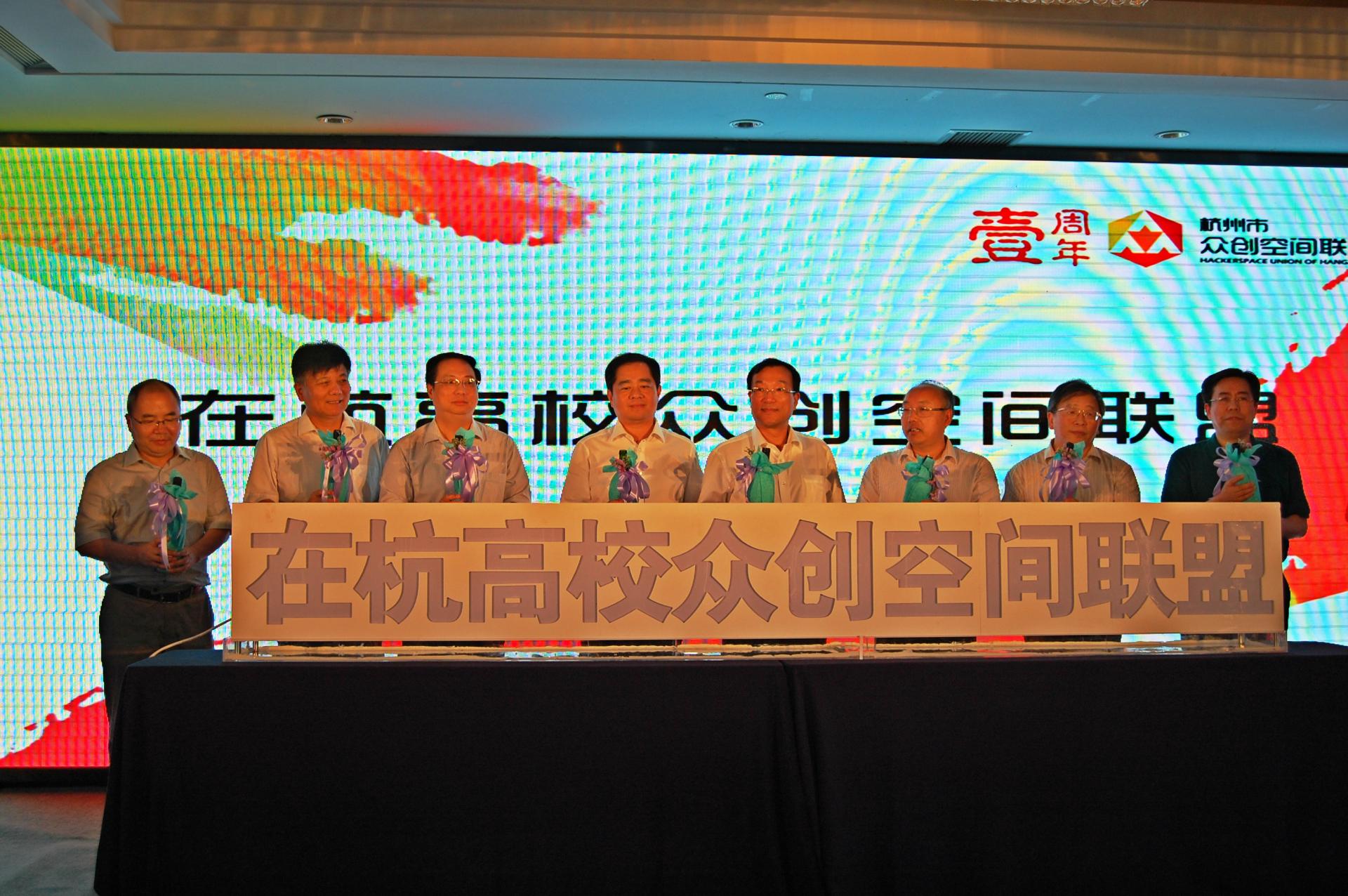 校长钟晓敏等省市领导一起上台完成了启动仪式,共同见证了“在杭高校众创空间联盟”成立。随后,成人网