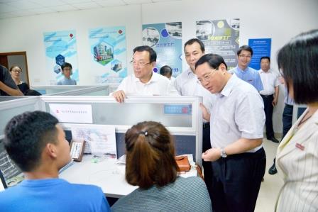 正在进行创业孵化的创客进行交流。创客空间首批入驻21家大学生创业孵化团队项目,涉及“互联网+”文化创意、教育培训等各种领域。看到正在认真工作的学生创客后,李强省长上前亲切地询问从事的创业项目信息和目前的经营情况,并给予了高度评价。他指出,只有将学生创业与其专业相结合,从学生自身兴趣出发找到创业想法,才能真正的激发学生创业热情,提高创业质量与水平。