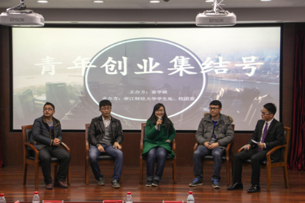 活动当天,还举行了“青年创业集结号之创业青年说”沙龙论坛。葱课CEO雷阿敏、树洞联合创始人曾嘉思、11点11分联合创始人秦旭斌,创客特供网联合创始人石锦澎与同学们分享了他们的创业经历与心得。