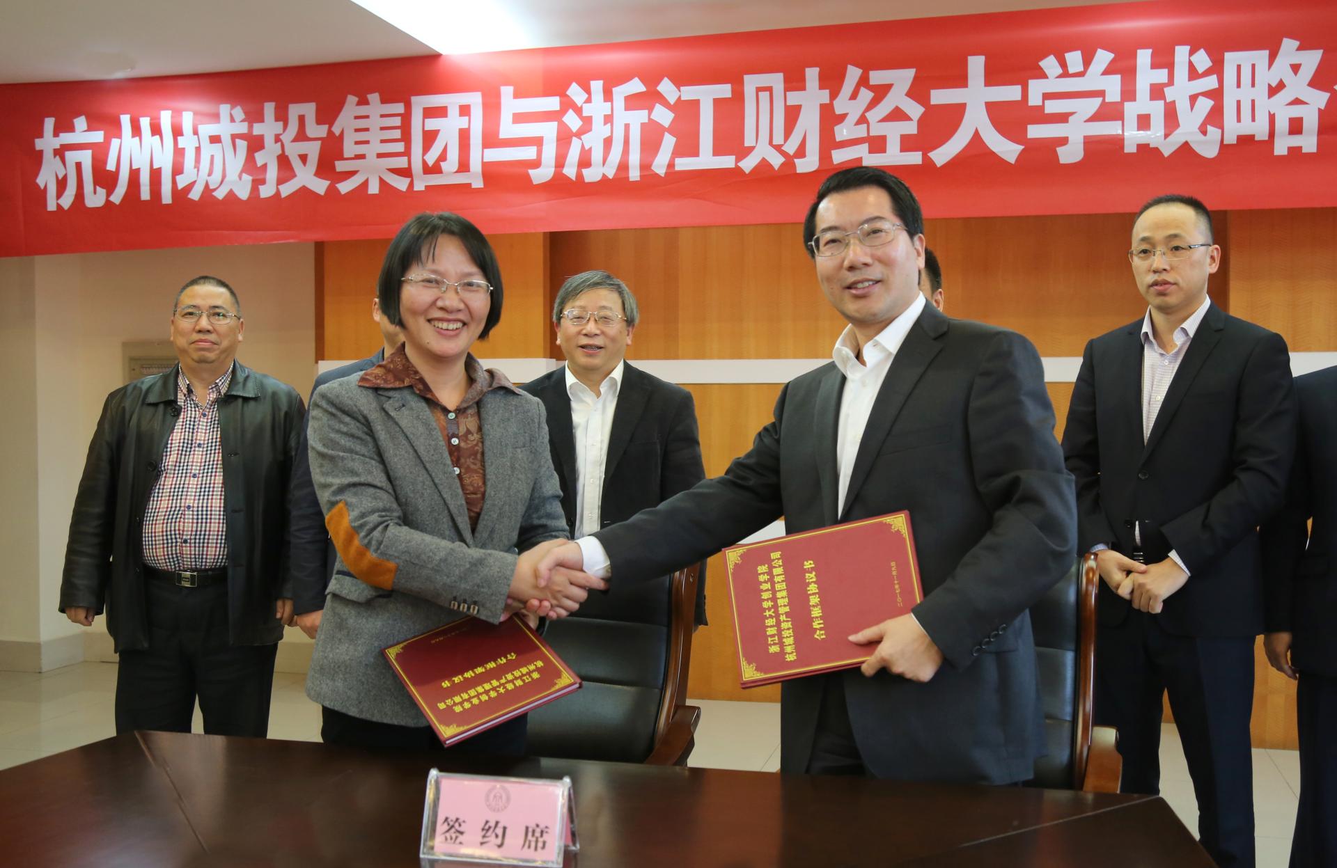 与杭州城投资产管理集团有限公司(简称:杭州城投资本)合作签约仪式在下沙校区隆重举行。杭州市城市建设投资集团有限公司(简称:杭州城投集团,系城投资本母公司)党委副书记范川、杭州城投资本董事长、总经理刘祥剑、副总经理万明勇、副总经理李炳、副总经理周敏,杭州城创投资管理有限公司总经理包红政,杭州城投富鼎投资管理有限公司总经理李洪杰,校长钟晓敏及相关职能部门、成人网