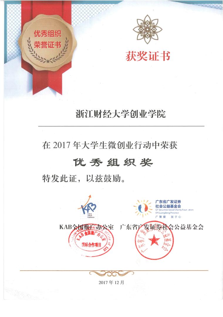 第二次获得大学生微创业行动优秀组织奖。