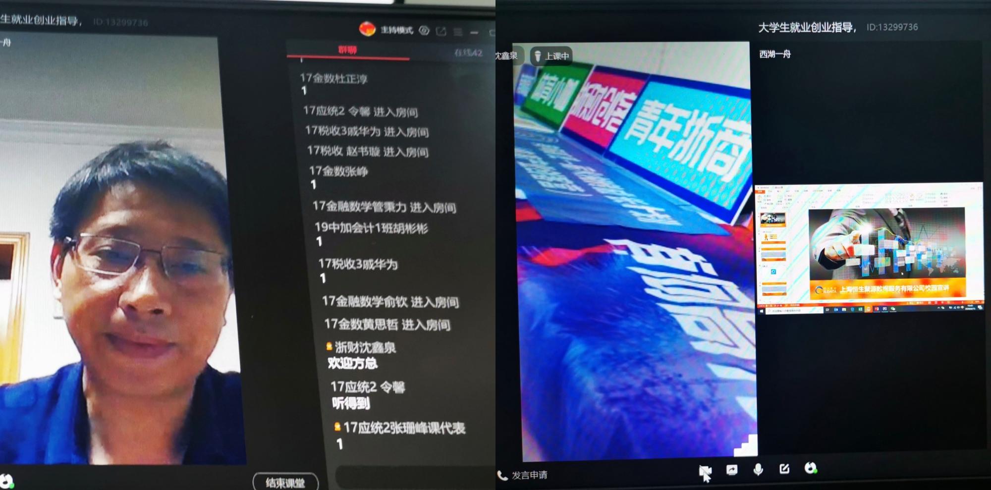 2020年6月15日晚,成人网 举行“基地精英进课堂”活动,杭州恒生聚源有限公司方向经理来到《大学生就业与创业指导》云端直播课堂,跟17金数班同学进行了交流。