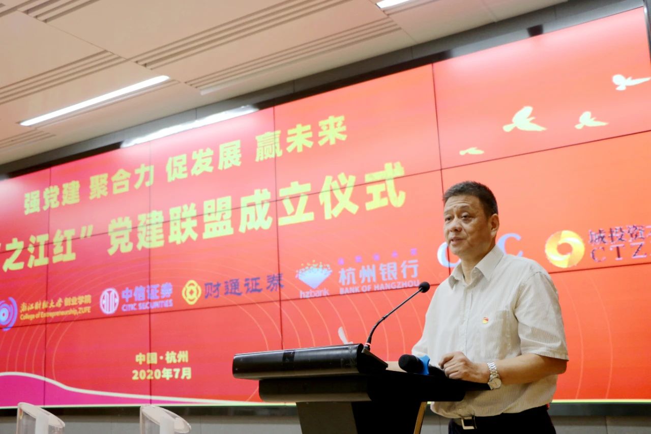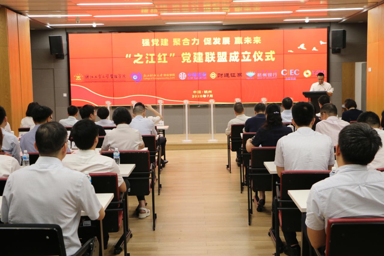 、杭州城投资产管理集团、浙江工业大学管理学院、中信证券浙江分公司、财通证券投资银行部、杭州银行营业部、杭州热联集团等7家单位共同发起成立。联盟采取跨界合作的方式组建,7家单位主业涵盖了高校、证券、银行、金属贸易、类金融投资等行业,共1411名党员、86个支部。下一步,“之江红”党建联盟还将系统化汇聚各成员单位资源,以基层党组织为基础、以项目推进为依托、以服务群众为根本,健全完善共商共建共享的党建工作机制,发挥党建群雁效应,构建“大党建、大联盟、大融合、大发展”的群雁高飞党建新格局,努力实现“组织共建、资源共享、活动联办、事务共商、党员共管、人才共育、文化共兴”目标。