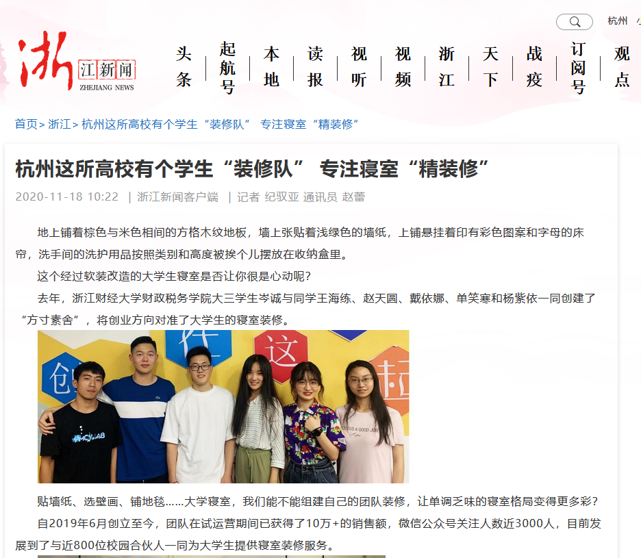 近日,学习强国、浙江新闻网、浙江经视、杭州网等多家媒体以“成人网 有个学生‘寝室装修队’专为同学打造‘精装修’寝室”等为题,报道成人网 “方寸素舍”创业团队项目。