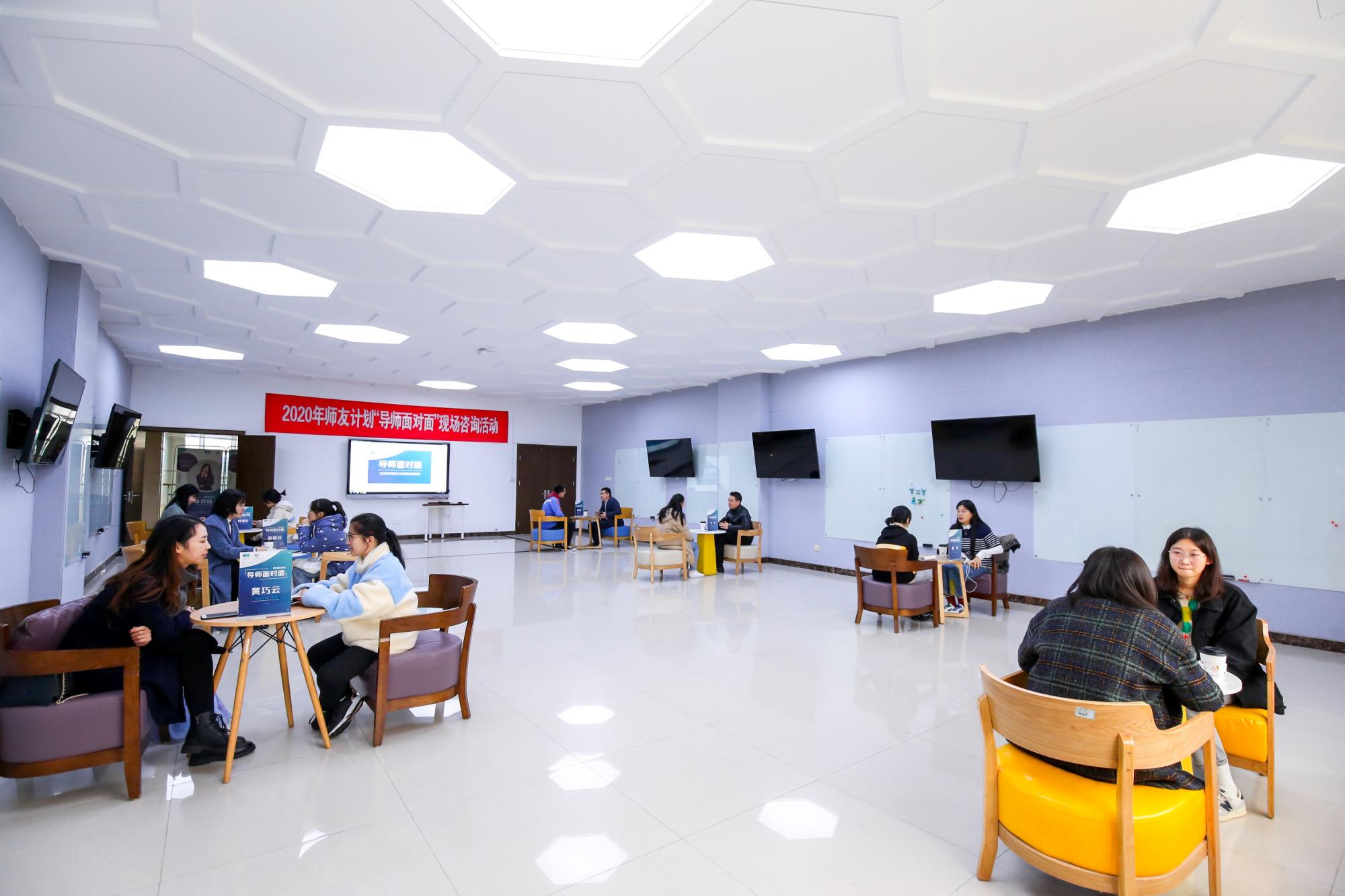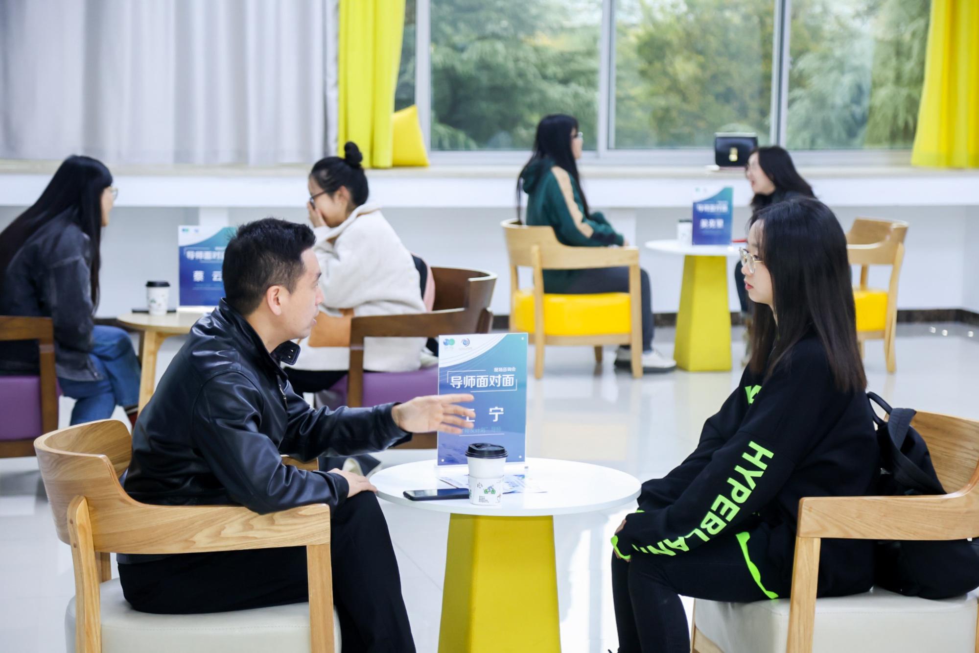 同时活动还邀请了杭州市“师友计划”导师开展现场坐诊咨询,为同学提供行生涯咨询、企职信息分享、面试技巧提升、双创政策讲解等各方面的咨询服务。通过一对一、面对面谈心聊天的方式,导师们认真倾听学生遇到的人生选择困惑,仔细分析并给出自己的建议。