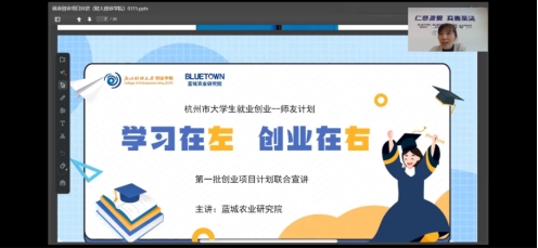主办、绘梦蓝创空间承办的杭州市大学生创业见习学员招募宣讲会在线上成功召开。本次宣讲会由蓝城农业研究院副院长向珊老师进行分享与讲解。