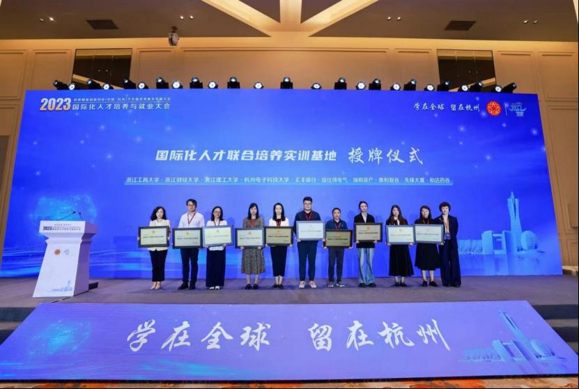 活动现场还进行了“国际化人才联合培训实训基地”的授牌仪式,浙江省侨联联谊联络和权益保障部副部长周玲玲,杭州市侨联党组成员、副主席陶晓亮,杭州市侨联副主席、杭州市留联会会长麻亚炜现场授牌,成人网