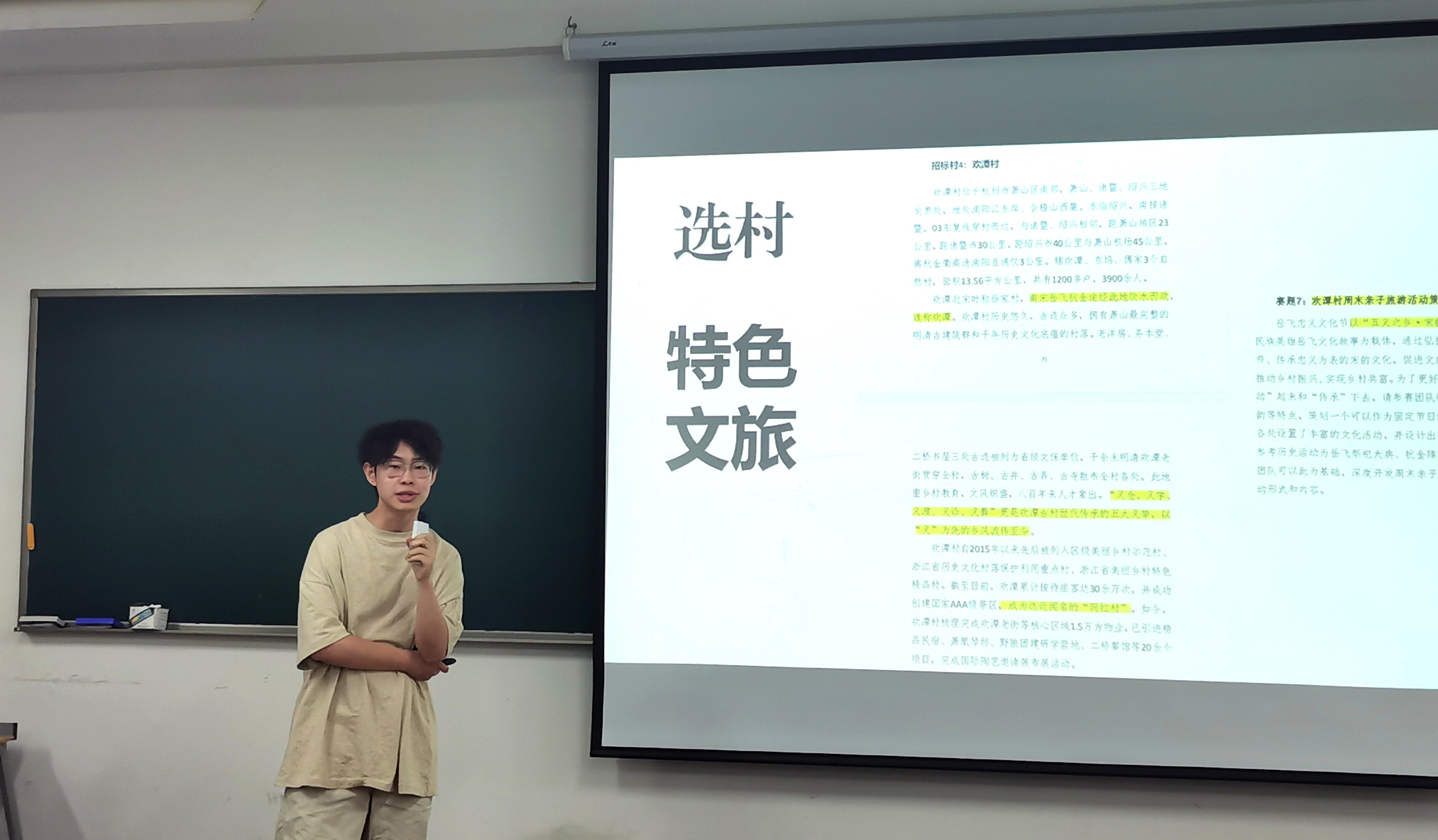 余点则结合自己的参赛经历,为在座的同学提供了宝贵的建议。他建议大家关注选题中的乡村特色元素,如品牌特色、地理标志和文化遗址等,以凸显项目的独特性和价值。此外,他还分享了团队构建和项目策划的经验,特别强调了美工在团队中的重要性,以及实地调研时拍照记录的重要性,以便更好地呈现项目成果。