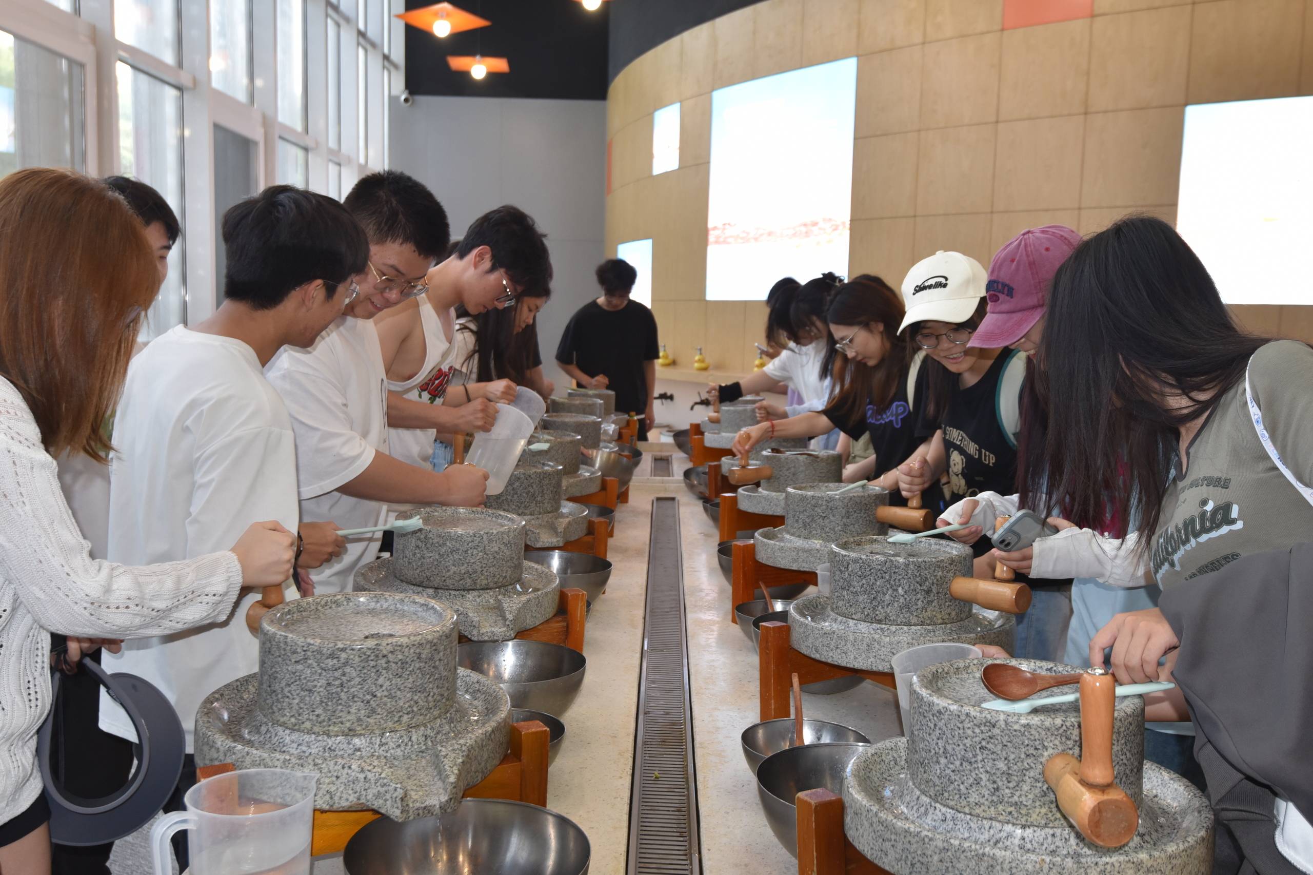 同学们还来到九阳体验馆,亲自体验了古法豆浆的磨制,了解过去豆浆产生的不易,也品尝到了由九阳豆浆机磨制的红枣豆浆以及由九阳空气炸锅制作的薯条,感受到了科技发展对人类带来的便利。