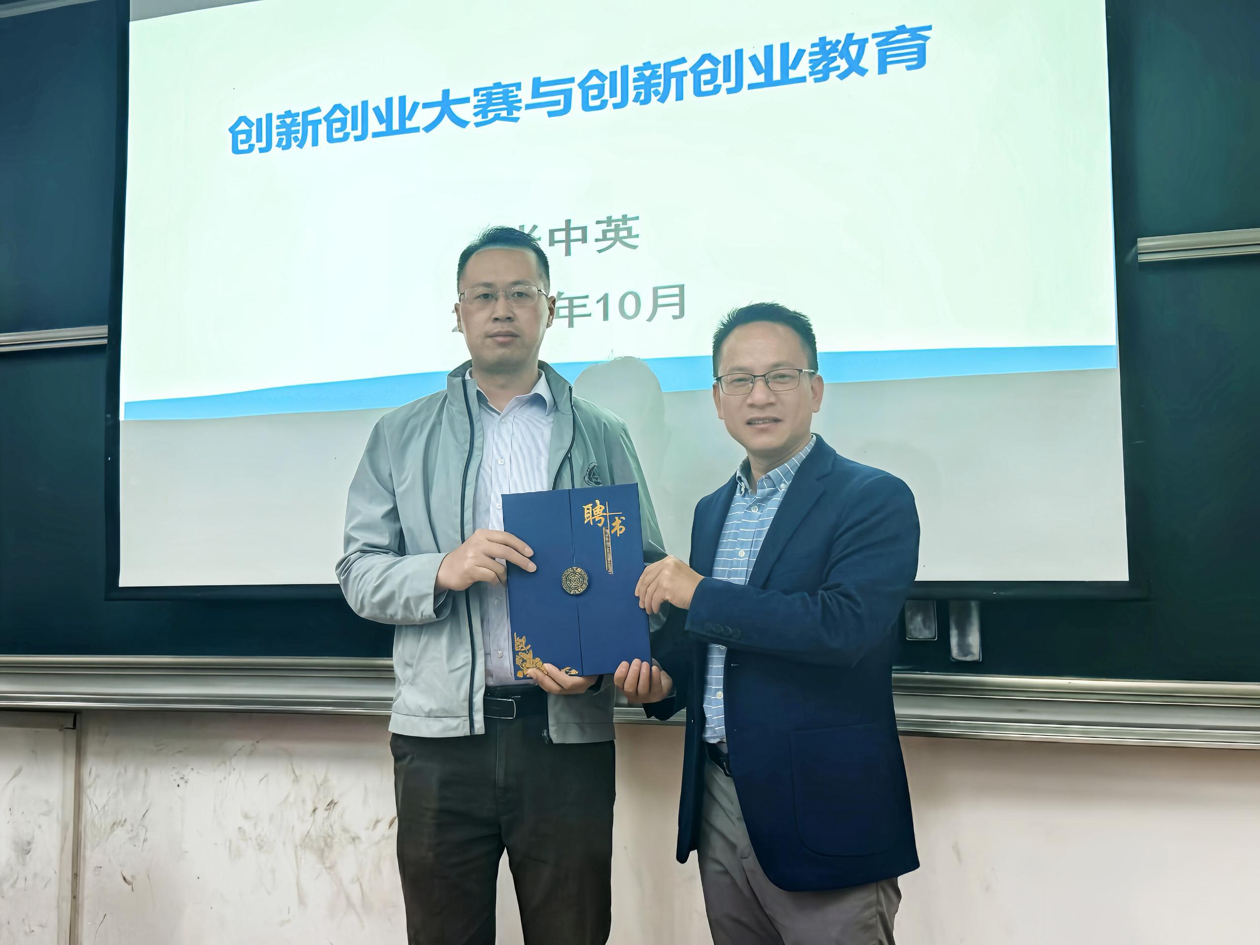 院长童夏雨致辞并为张中英教授颁发创新创业导师聘书。