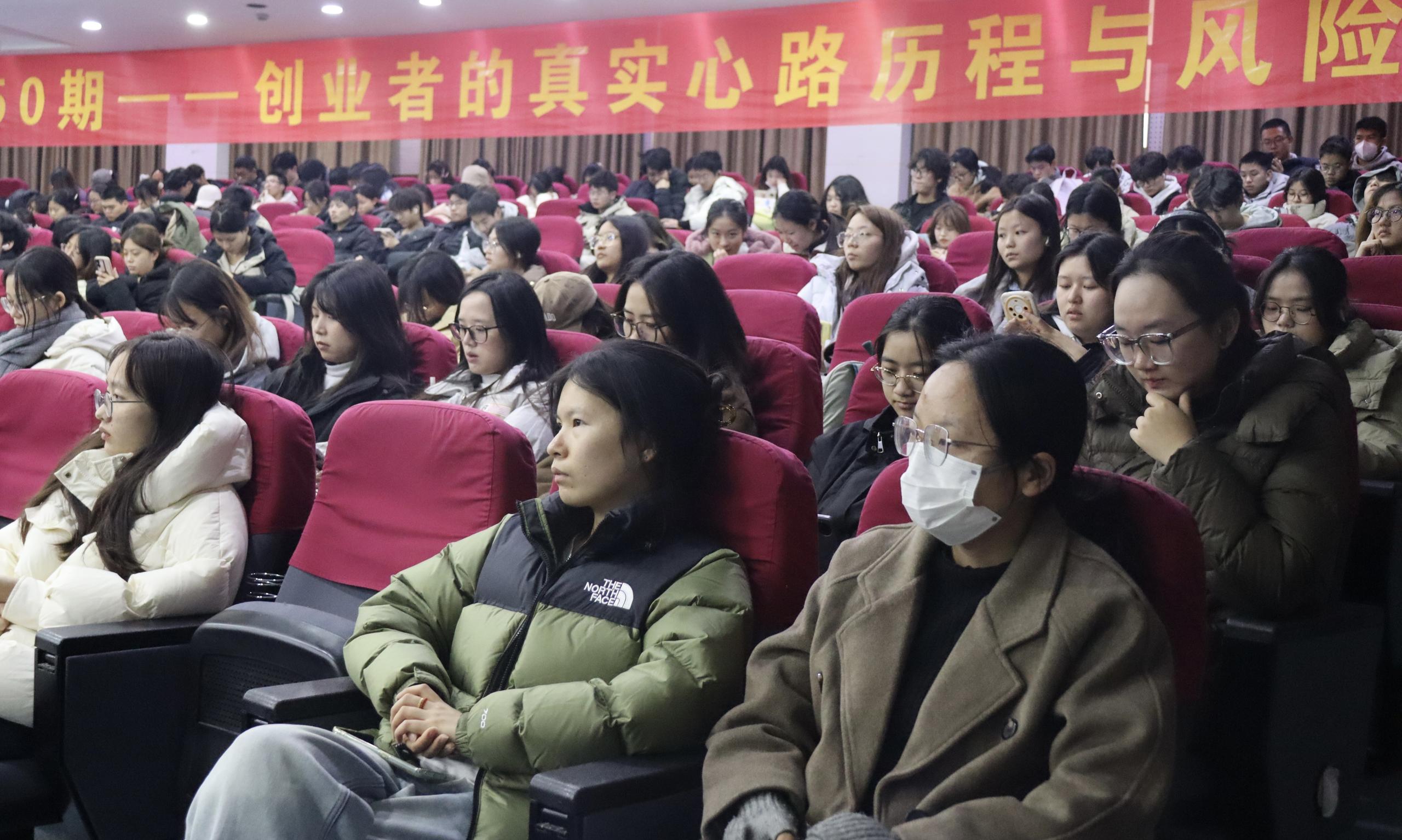 其次,冯月维探讨了创业过程中的风险,向同学们分享了“风险避坑”心得——在市场不确定性和内贸竞争激烈的背景下,自己的企业是如何应对挑战并进行远景规划的。最后,她还与现场观众进行了交流问答,帮助大家更全面地理解创业的复杂性和挑战。