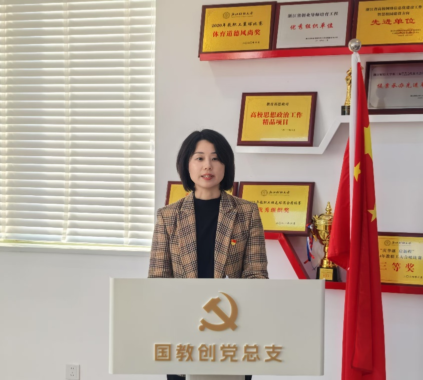 大会在庄严的国歌声中正式拉开序幕,董进才副校长致辞,他充分肯定了国教创党总支在留学浙财、创新创业教育、乡村振兴及数智校园建设等方面取得的成果,并对党总支的发展方向提出了指导性意见。他提出了四点要求:第一,坚持党的领导,始终把政治建设摆在首位;第二,全面深化改革,着力破解发展中的深层次问题;第三,推进“三风”建设,激发学院发展内生动力;第四,发挥关键少数作用,着力加强领导班子建设。