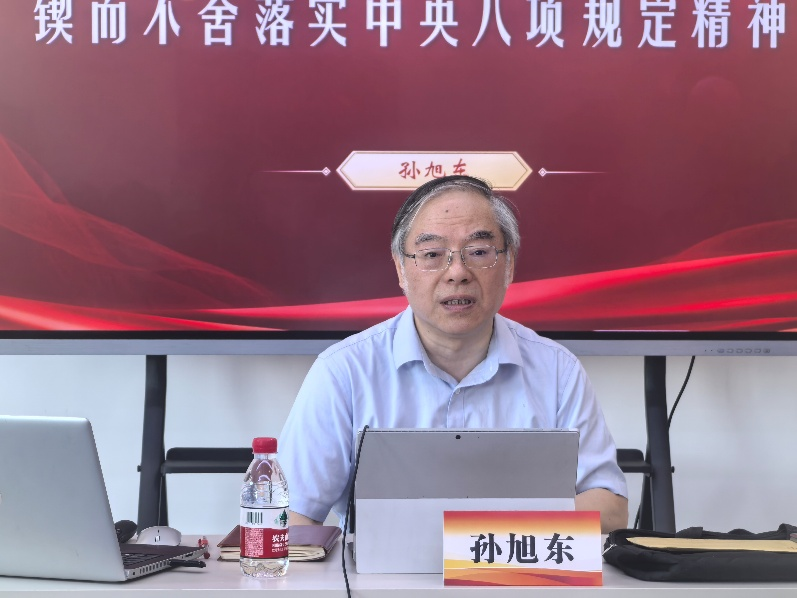 随后,孙旭东以《锲而不舍落实中央八项规定精神》为题,详细解读了中央八项规定精神的历史脉络与现实意义。他指出,中央八项规定是新时代加强党的作风建设的重要内容、突出特点和鲜明标志,是对党的作风建设优良传统的继承和发展,当年“延安作风”打败“西安作风”,今天也要靠党的优良作风使“东风压倒西风”。他从4个方面讲述八项规定是党的十八大以来以习近平同志为核心的党中央治国理政的重要战略,以“十个坚持”总结新时代作风建设的鲜明特点,强调要锲而不舍落实中央八项规定精神,认真开展学习教育,准确把握“四风”问题,严防严治“四风”问题隐形变异、反弹回潮,高度警惕防治风腐同源、风腐交织、风腐一体的演变,坚持实干为先、担当作为、干事创业,把作风建设作为终身课题。