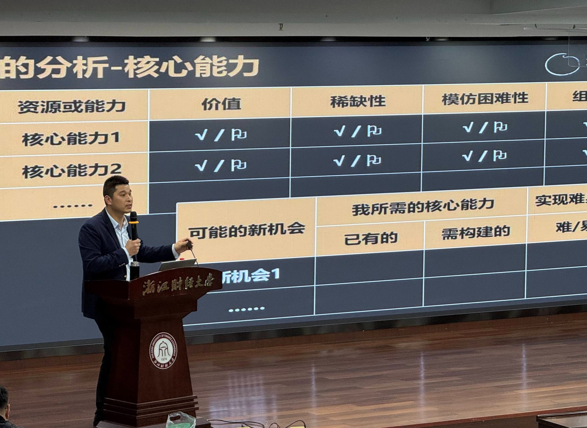 韦德华首先以亚马逊创始人贝索斯之问——“未来十年,什么是不变的?”引发在场同学深思。他指出,在充满不确定性的“乌卡时代”,创业者需敏锐洞察社会的核心矛盾,在变化中锚定方向,构建对真实世界的系统性理解。