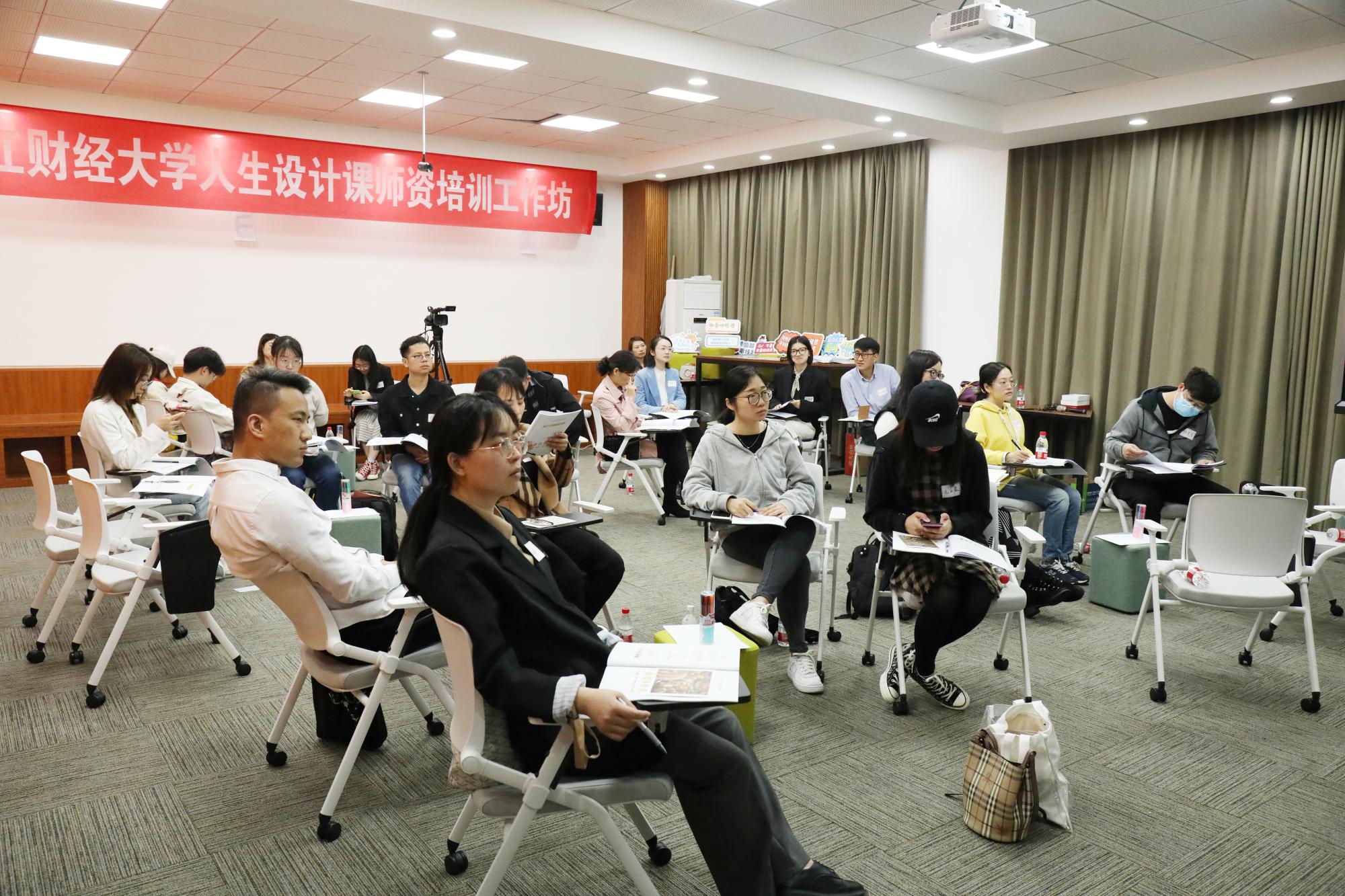 在文化中心102举办了人生设计课师资培训工作坊。来自各个学院课程师资共22人参加培训,同时26名学生助教一起参与了培训学习。本次培训邀请了广州好奇心教育咨询有限公司的创始人、人生设计认证教练丘佩凡担任主讲。