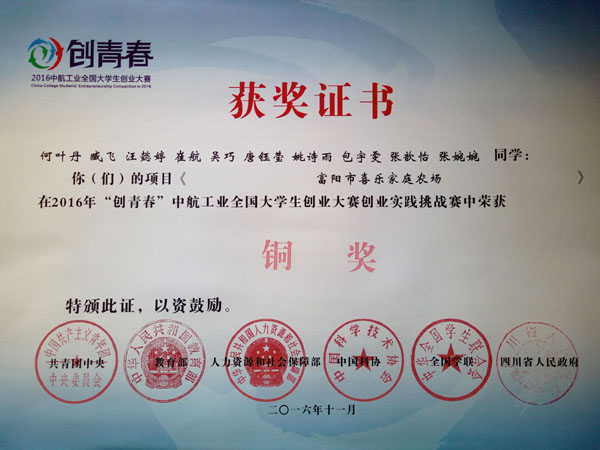 东方学院选送的作品《富阳市喜乐家庭农场》(团队成员:何叶丹、臧飞、汪懿婷等,指导老师:叶城均、崔艳明、陈松)获得全国铜奖的优异成绩。