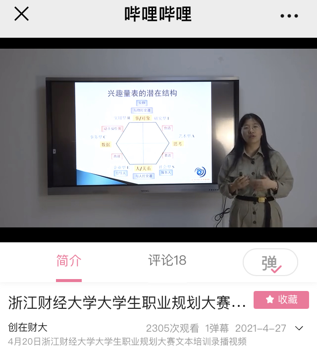 学生开展职业规划大赛文本培训。本次培训以视频录制形式进行,由“创在财大”视频号及B站发布并在评论区答疑解惑,近5600多名同学参加了本次培训。