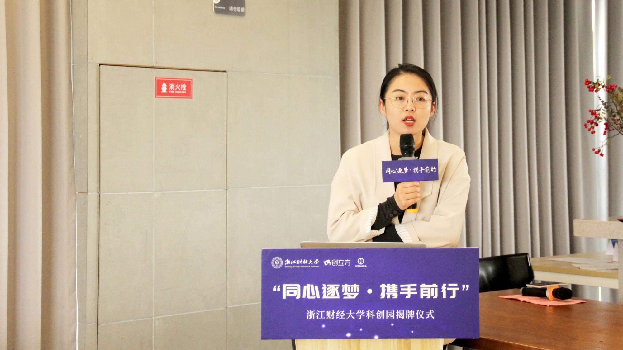 揭牌仪式结束之后随即举行了蓝创分享会,杭州闪电轻学科技有限公司CEO朱凤致女士为同学们带来了一场从零到壹的创业经验。