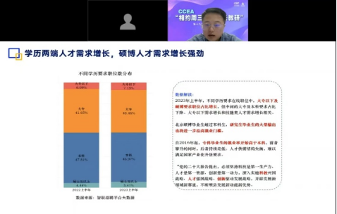 承办的CCEA“相约周三·空中云教研”第十九期:人才大数据洞察成功举办。智联招聘华东人才研究院执行院长吕宇龙作为嘉宾对相关数据进行了分析及总结。