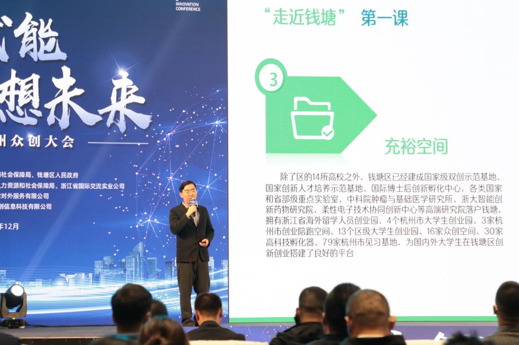钱塘区人力资源和社会保障局周科长针对钱塘区创业扶持政策进行了解读。周科长首先介绍了钱塘区的“优势产业”、“黄金政策”、“充裕空间”、“良好服务”等内容,指出大学生就业创业优惠政策对高校大学生的扶持力度及手段,最后提到高技能人才和博士后的优惠政策。